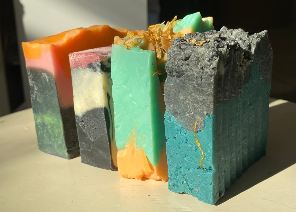 - A soap my partner made when they were here with me. scented with ginger orange and clove essential oil, topped with calendula petals.
