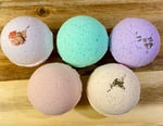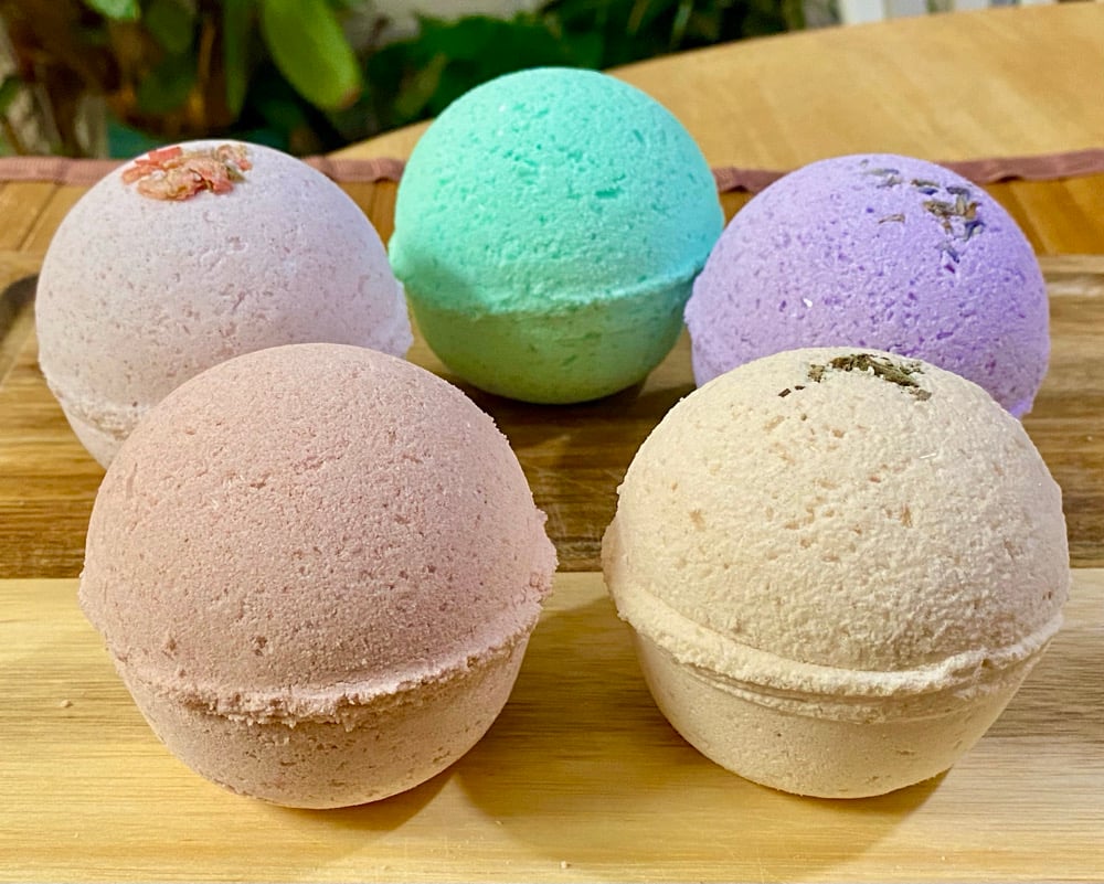 A collection of essential oil bath bombs for a nice, soothing, and therapeutic time in your bathtub. All of these bath bombs have therapeutic grade essential oils in them, and Epsom salt.